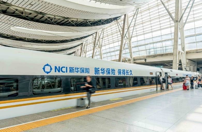 新华保险冠名高铁列车。
